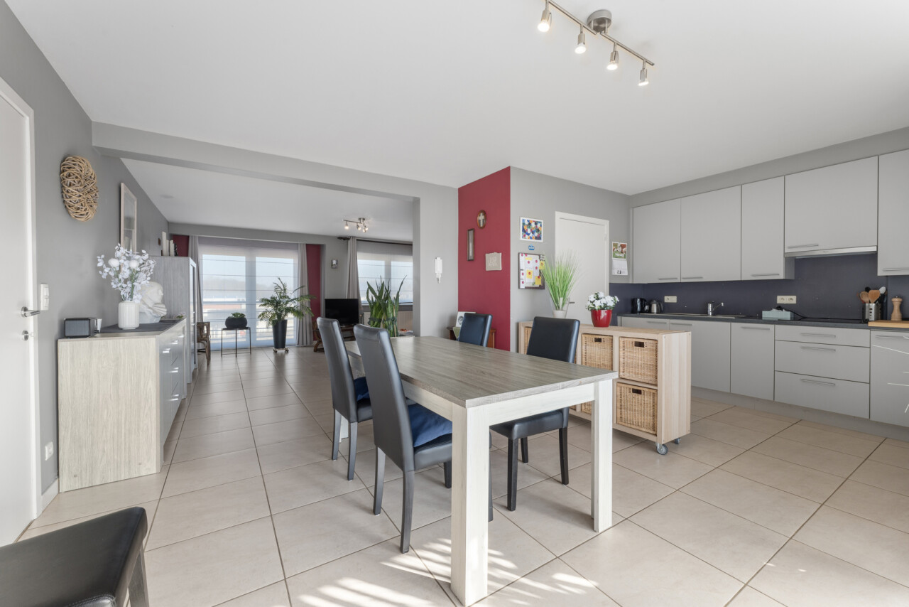 Dit ruime appartement op 102 m² heeft bijkomend ook een GROTE DUBBELE GARAGE, een TERRAS met OPEN ZICHT en een praktische berging/wasplaats.