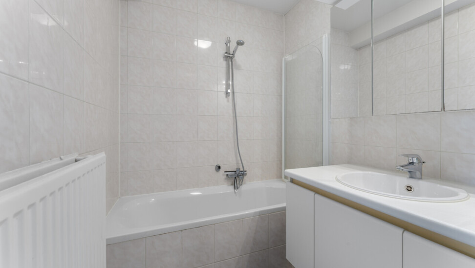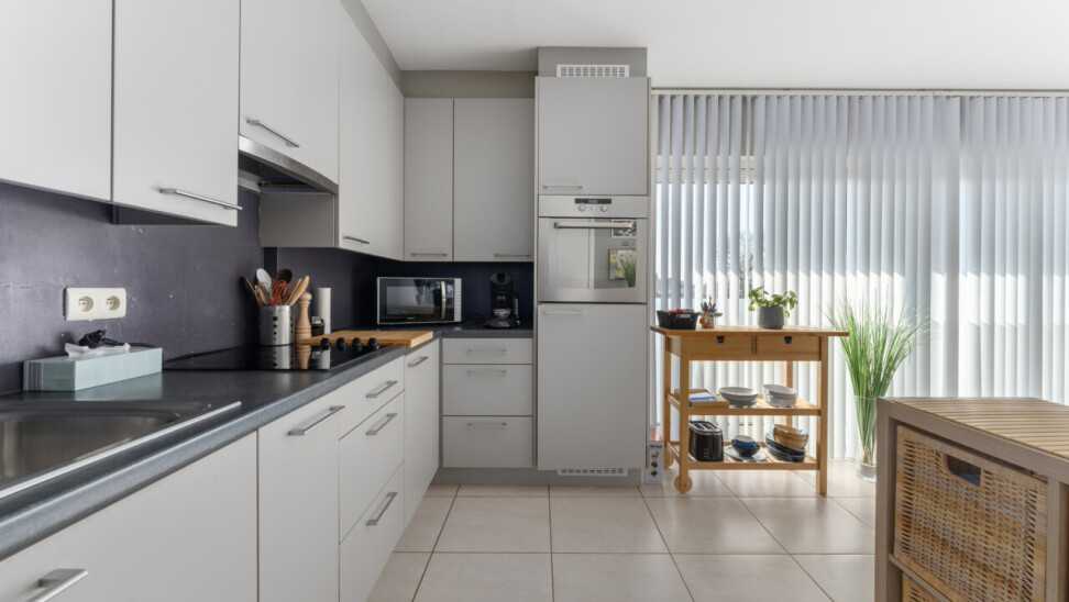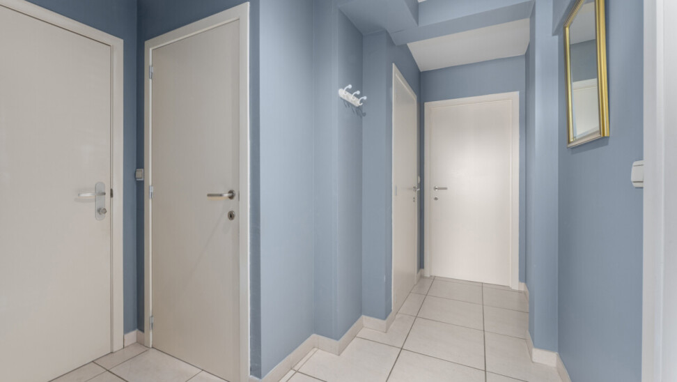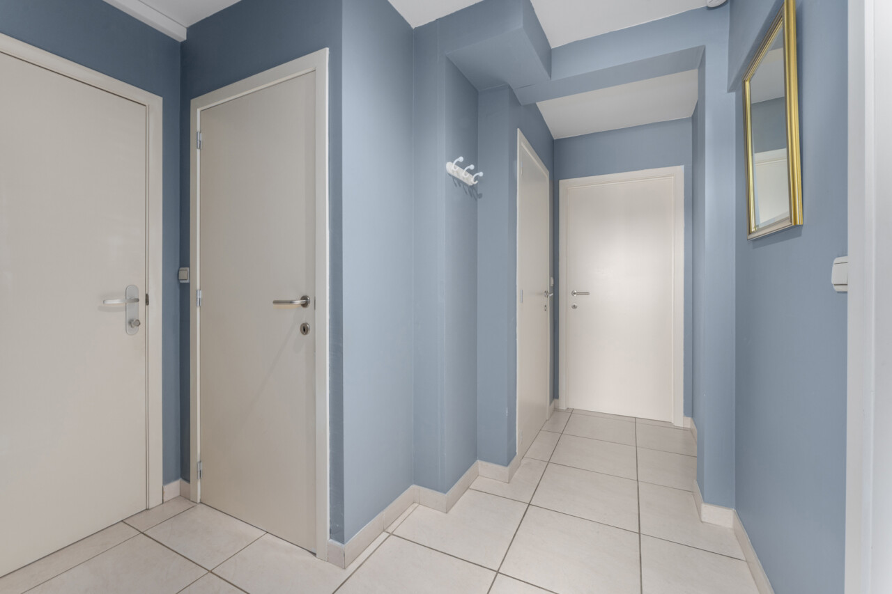 Het appartement heeft op het gelijkvloers een eigen berging/wasplaats en een dubbele garage met automatische sectionaalpoort.