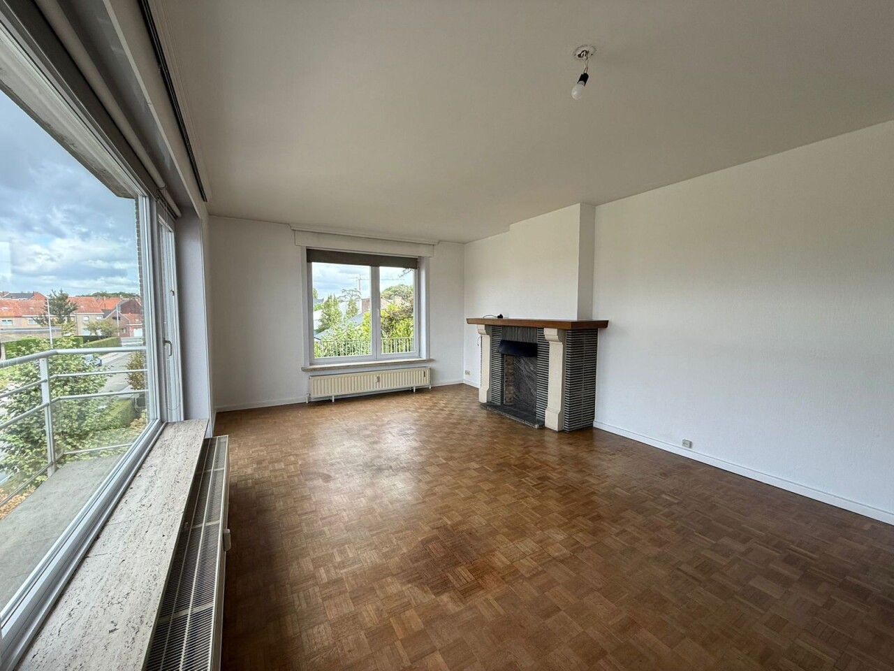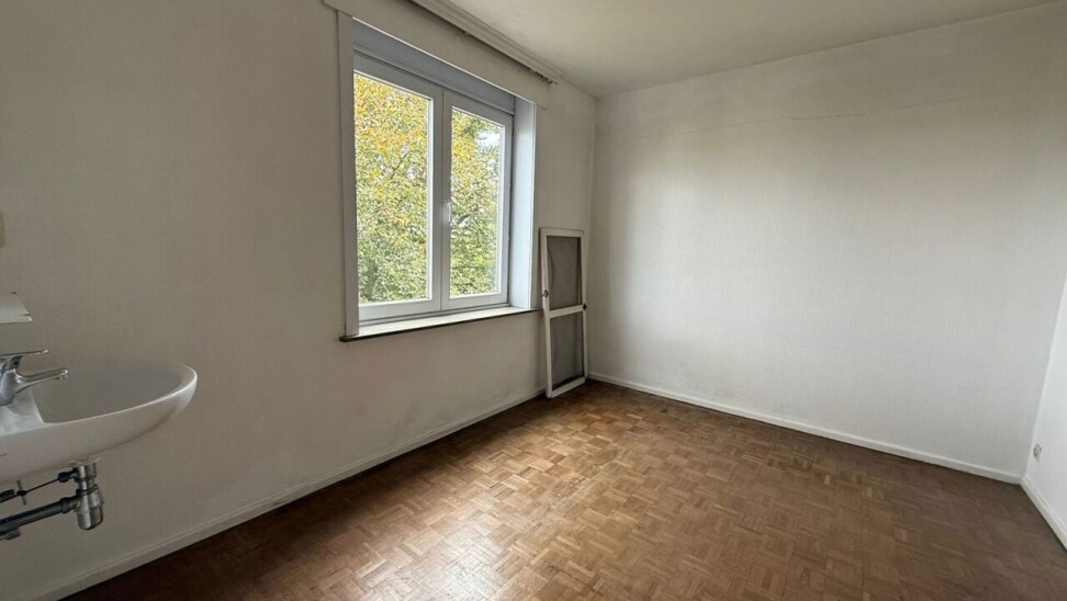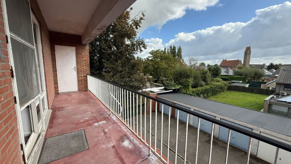 Je komt binnen in de inkomhal met gastentoilet. De woonkamer biedt uitzicht op de straat en toegang tot het vooraan gelegen balkon. Aansluitend is er de aparte, volledig ingerichte keuken met dubbele spoelbak, elektrisch fornuis, dampkap en koelkast.
