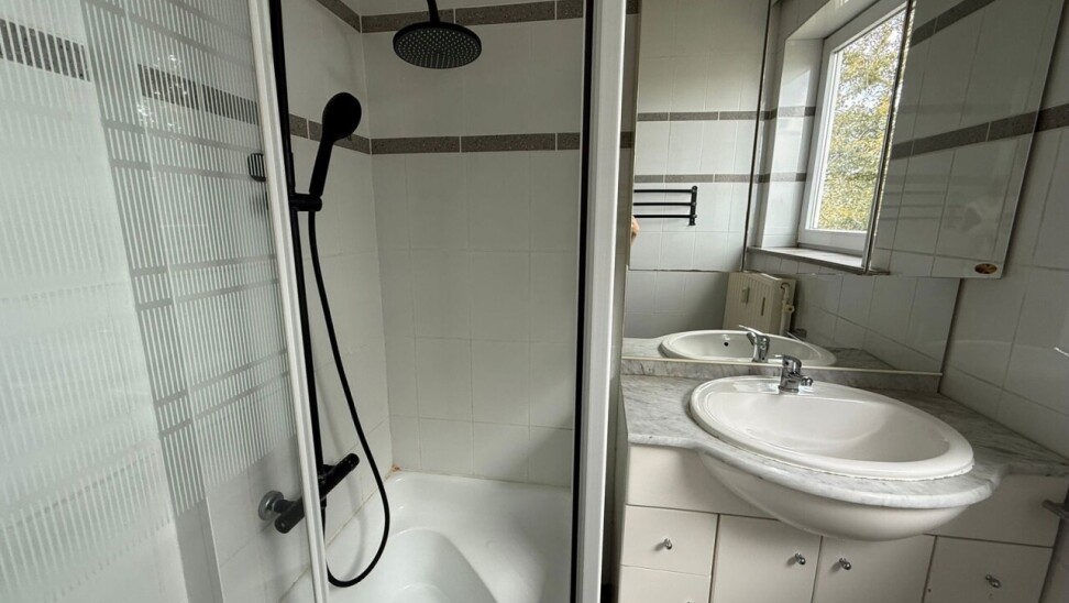 Achteraan bevinden zich drie rustig gelegen slaapkamers, waarvan twee met toegang tot het achtergelegen balkon en een berging met aansluiting voor de wasmachine. De badkamer is uitgerust met een lavabomeubel en een douche.
