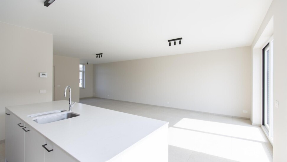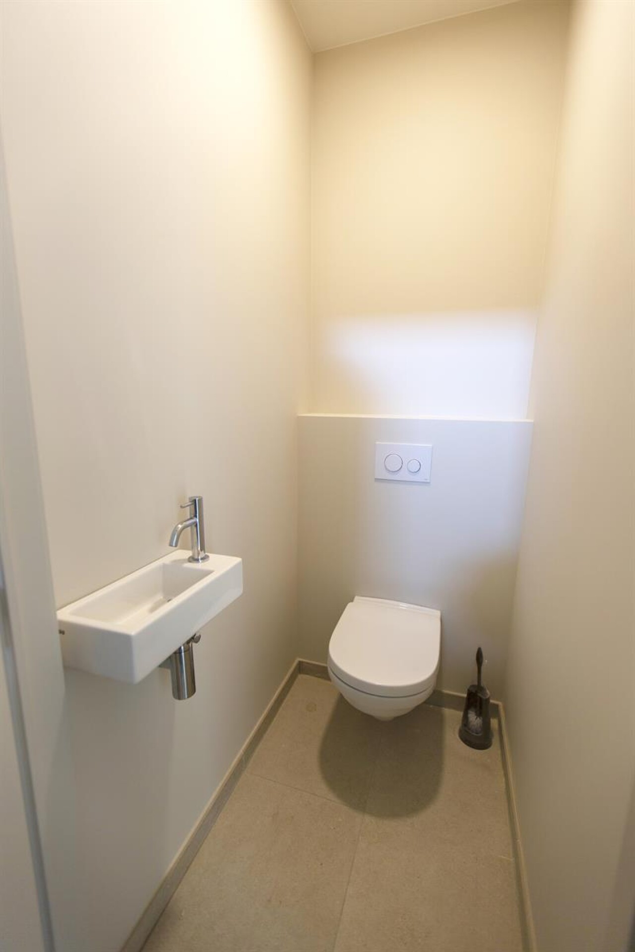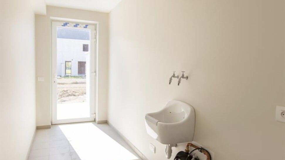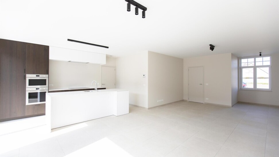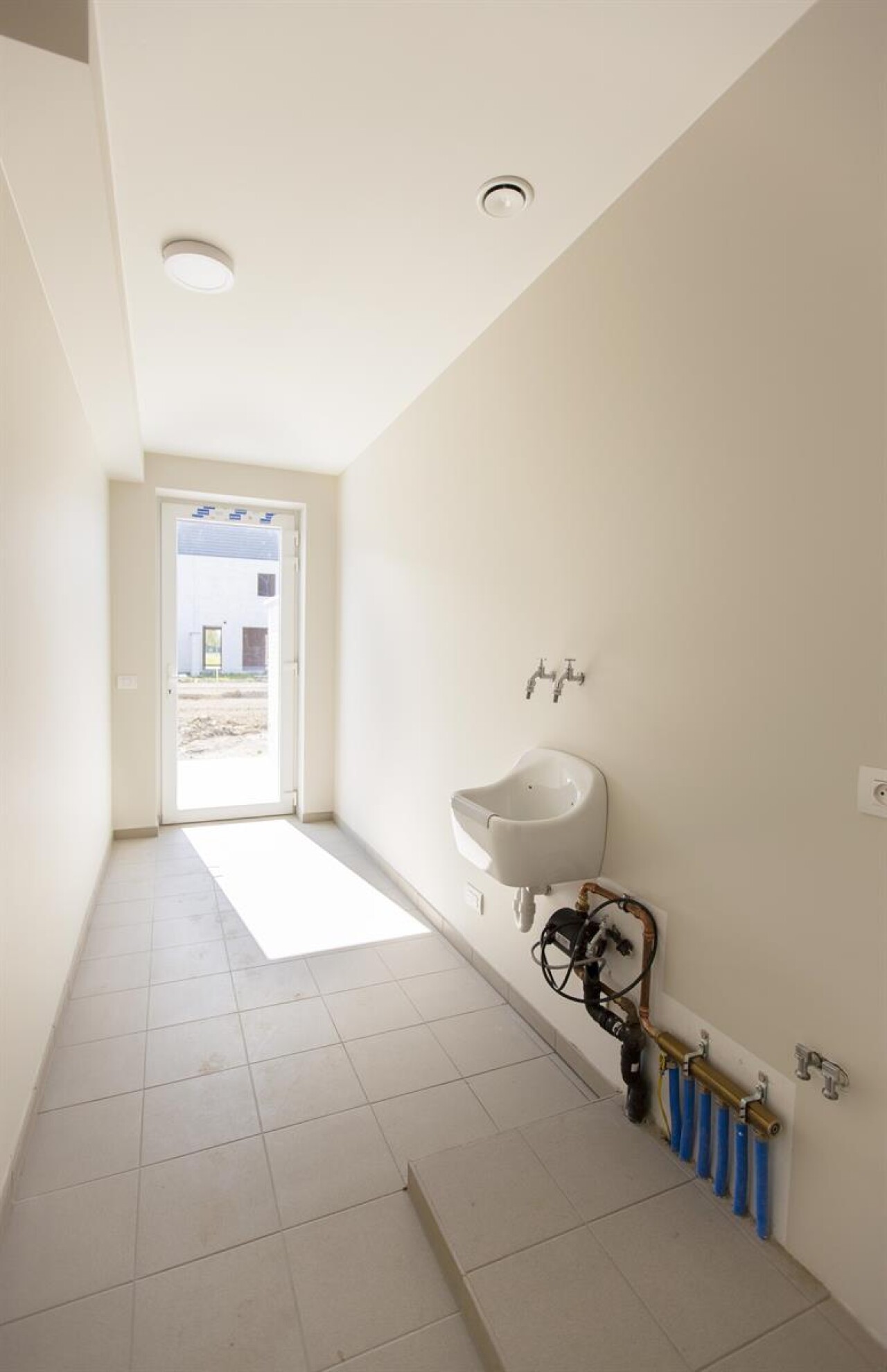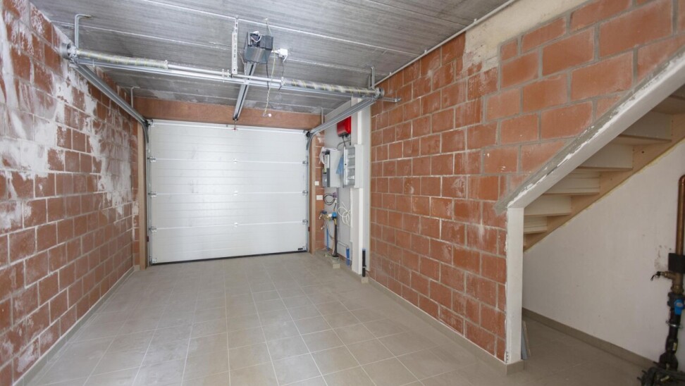 GELIJKVLOERS: hall met gastentoilet, lichtrijke leefruimte met volledig ingerichte open kwaliteitskeuken met aansluitend een aparte berging/wasplaats en toegang tot de garage met automatische sectionaalpoort