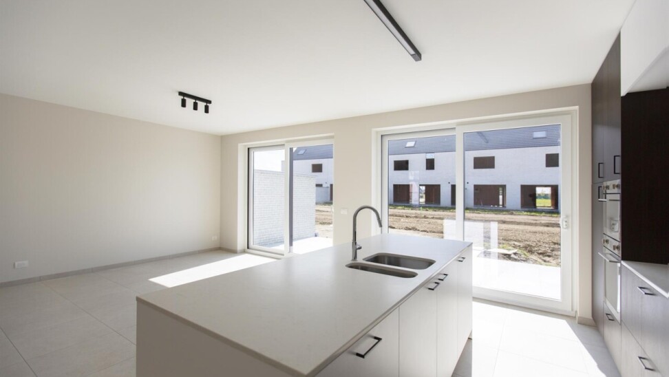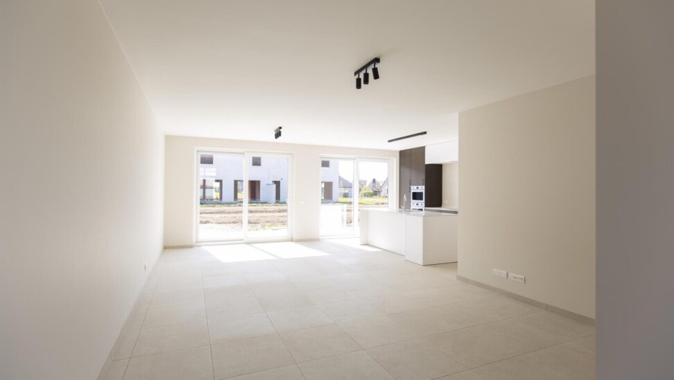 Via de leefruimte is er de toegang naar het terras en de tuin.