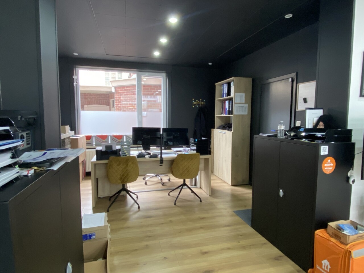 INDELING : handels- of bureelruimte (42m²), aparte keuken (+/- 11 m²), koertje met toilet.