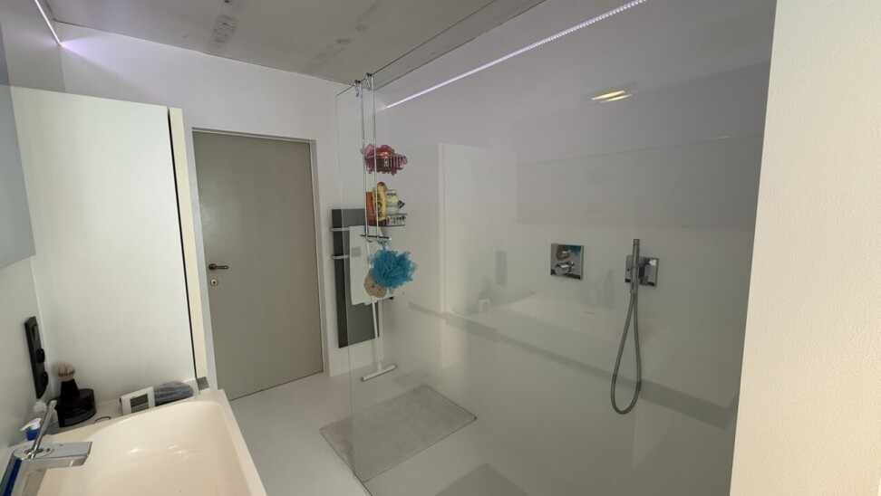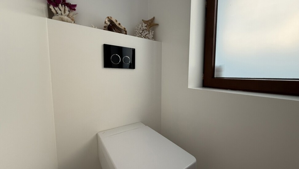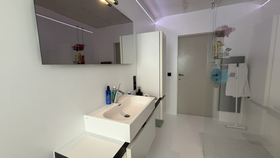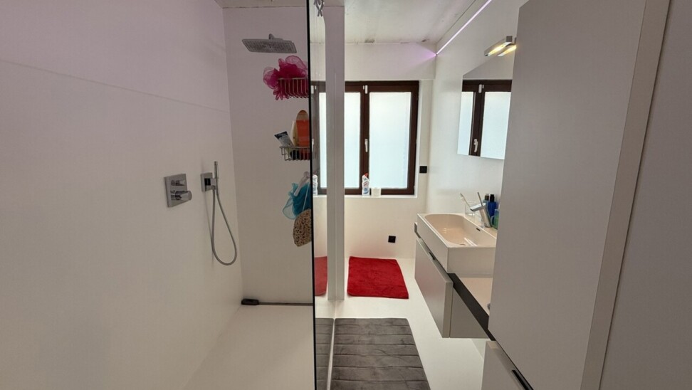 Via de nachthal bereik je de 2 slaapkamers en de badkamer, ingericht met een inloopdouche, lavabomeubel en toilet.