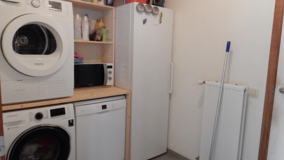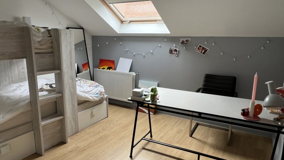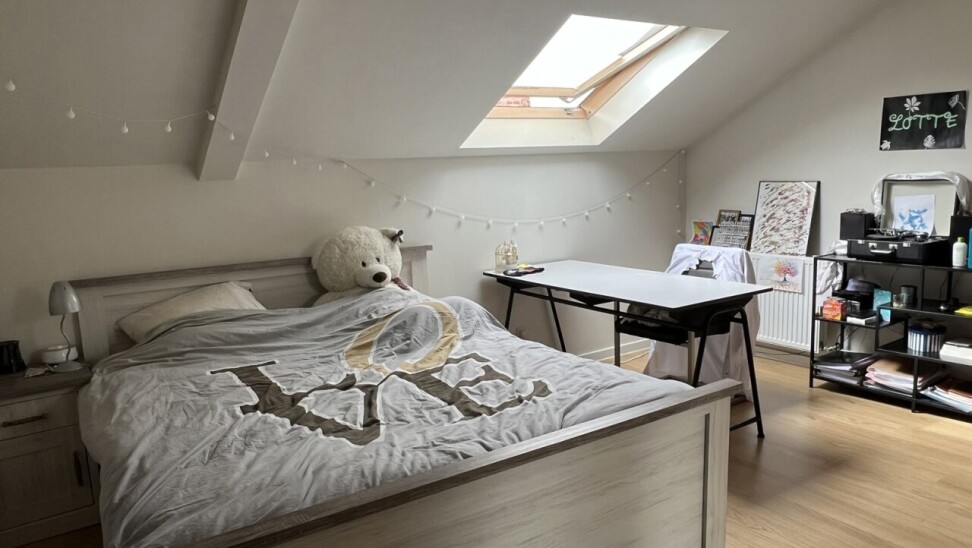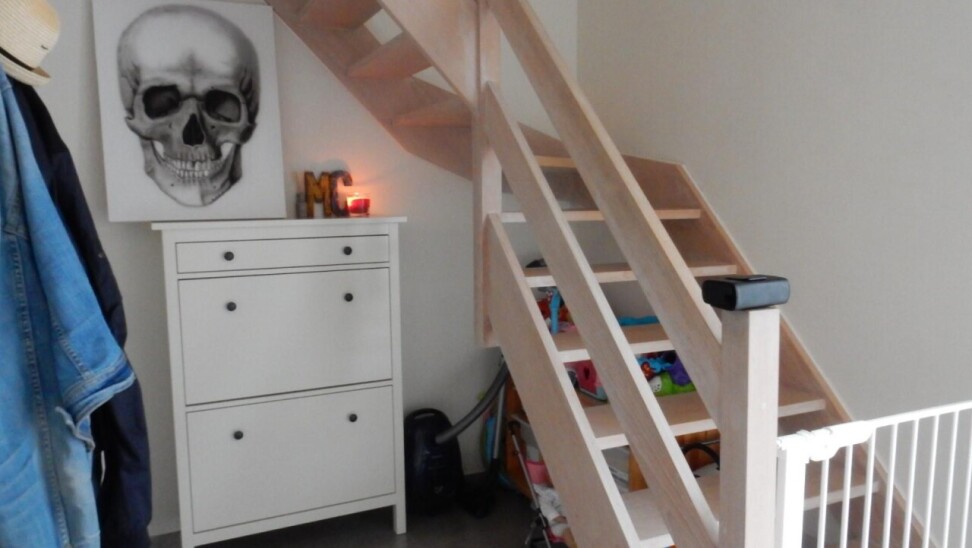 Er is een uitschuiftrap naar de geïsoleerde zolder.