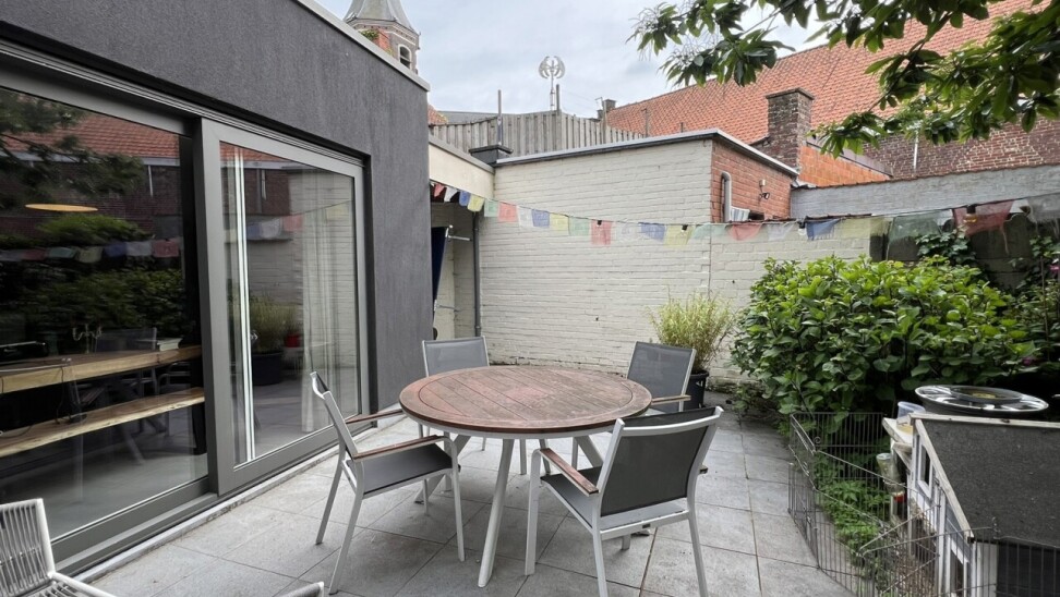 De woning heeft een toffe groene binnentuin met tuinhuis.