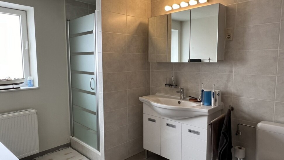 Drie ruime slaapkamers en een comfortabele badkamer met ligbad, douche en lavabomeubel.