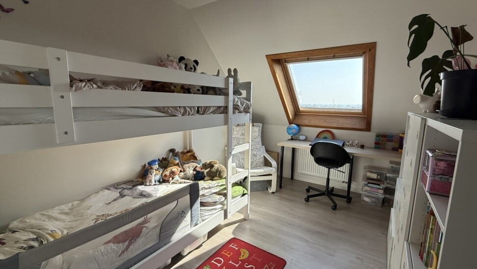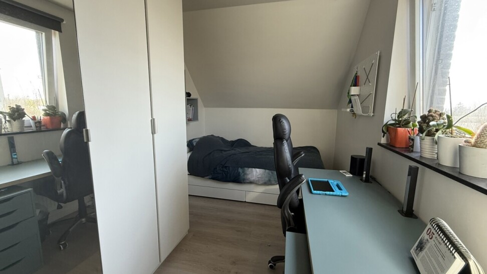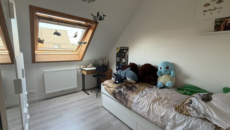 Verdieping: 4 slaapkamers, apart toilet en badkamer met inloopdouche en lavabomeubel. Vaste trap naar niet ingerichte zolder.