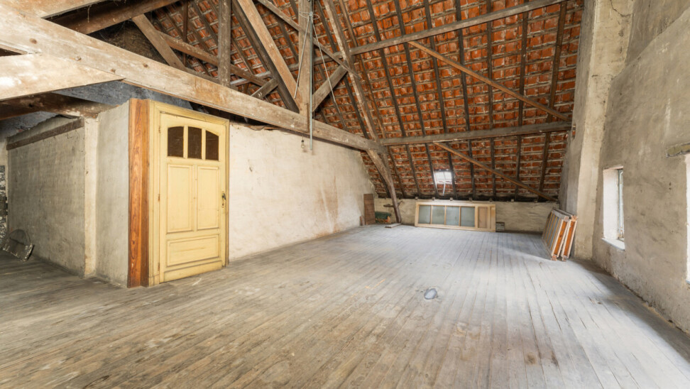 ZOLDER: vaste trap naar een hoge zolderruimte met potentieel voor extra kamers.