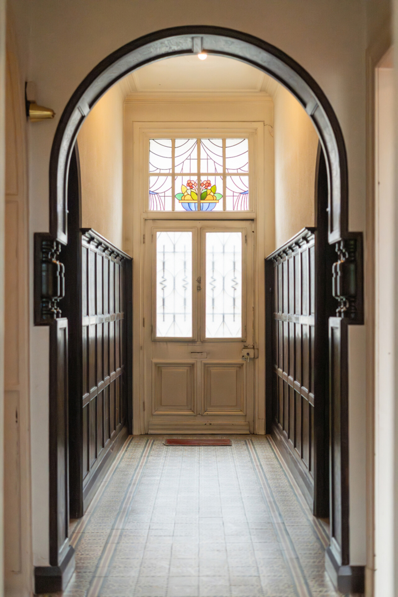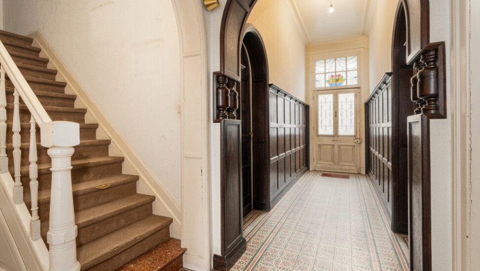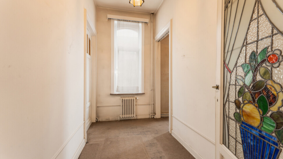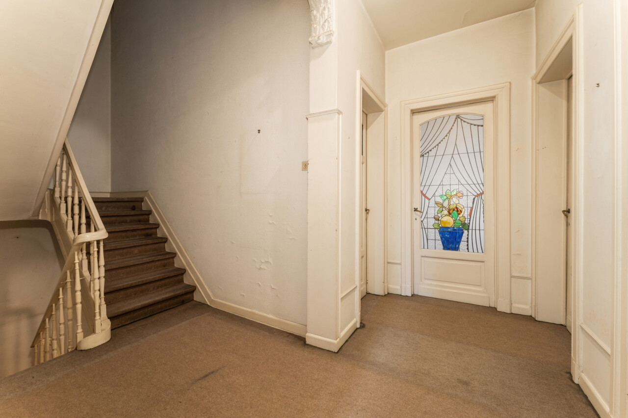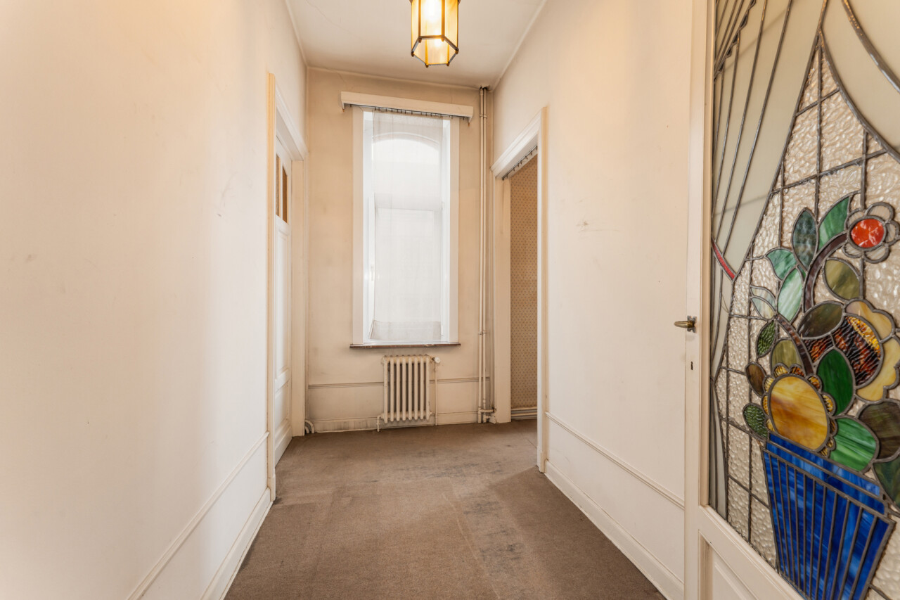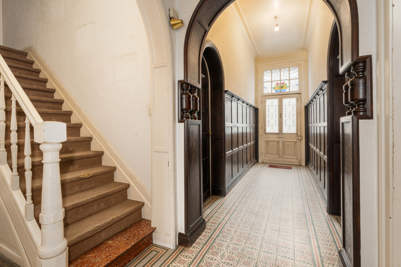 Binnenin zorgen de hoge plafonds en de ruime volumes voor een aangenaam gevoel van licht en ruimte. De bestaande indeling leent zich tot een doordachte herinrichting met afzonderlijke werkruimte, praktijk of bureau, terwijl de authentieke elementen de woning haar karaktervolle uitstraling geven.