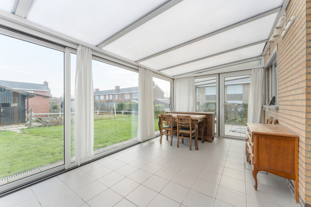 De recente veranda zorgt voor bijkomende leefruimte en een aangename lichtinval.