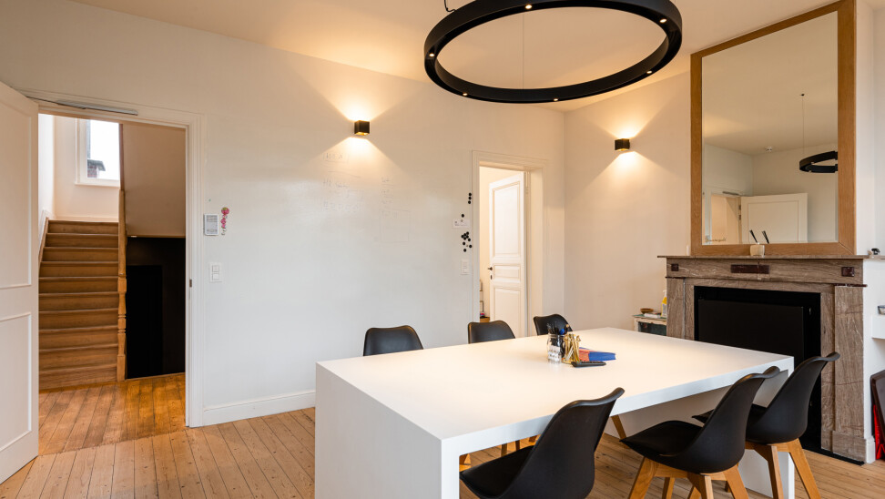 Een kantoorruimte zonder zorgen, tot in de puntjes gerenoveerd die zelfs mét gepast meubilair kan gehuurd worden.
