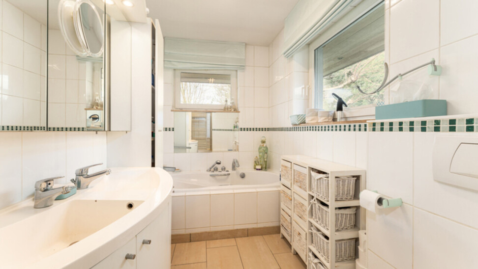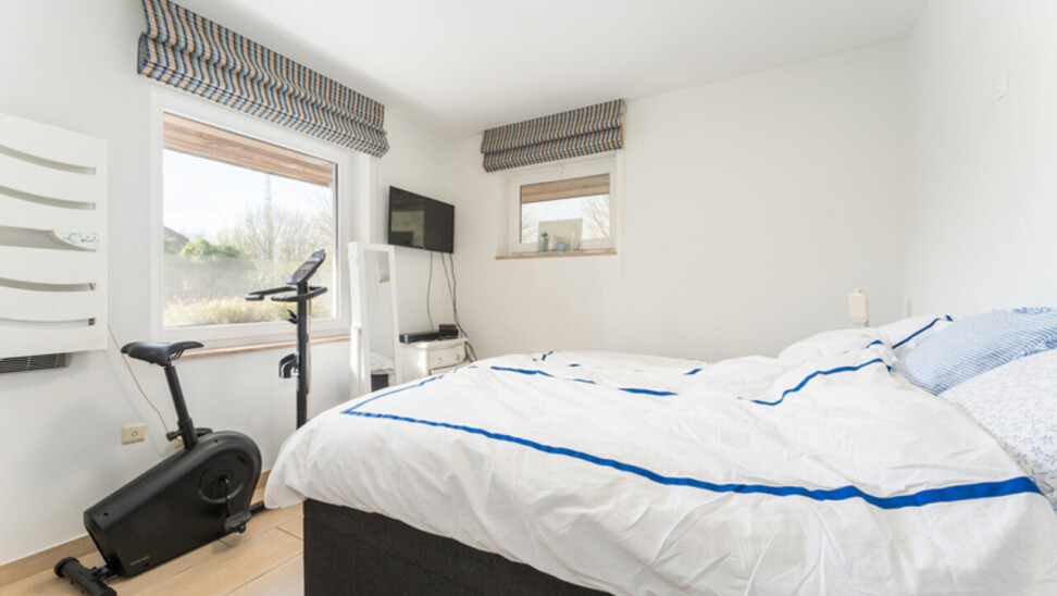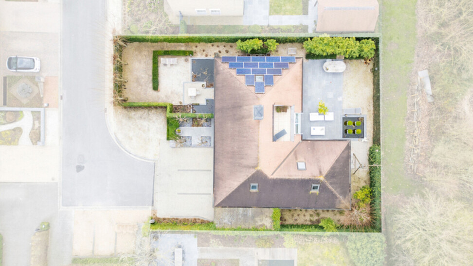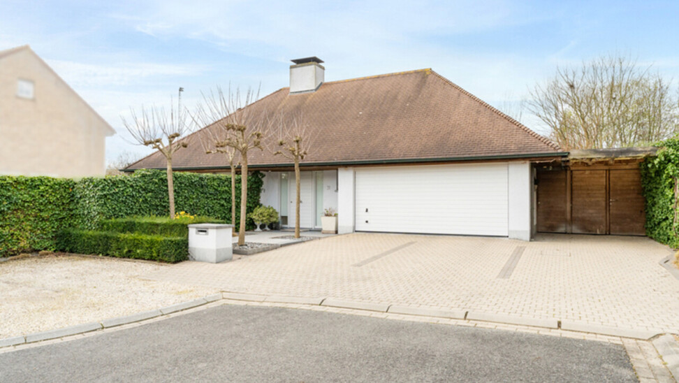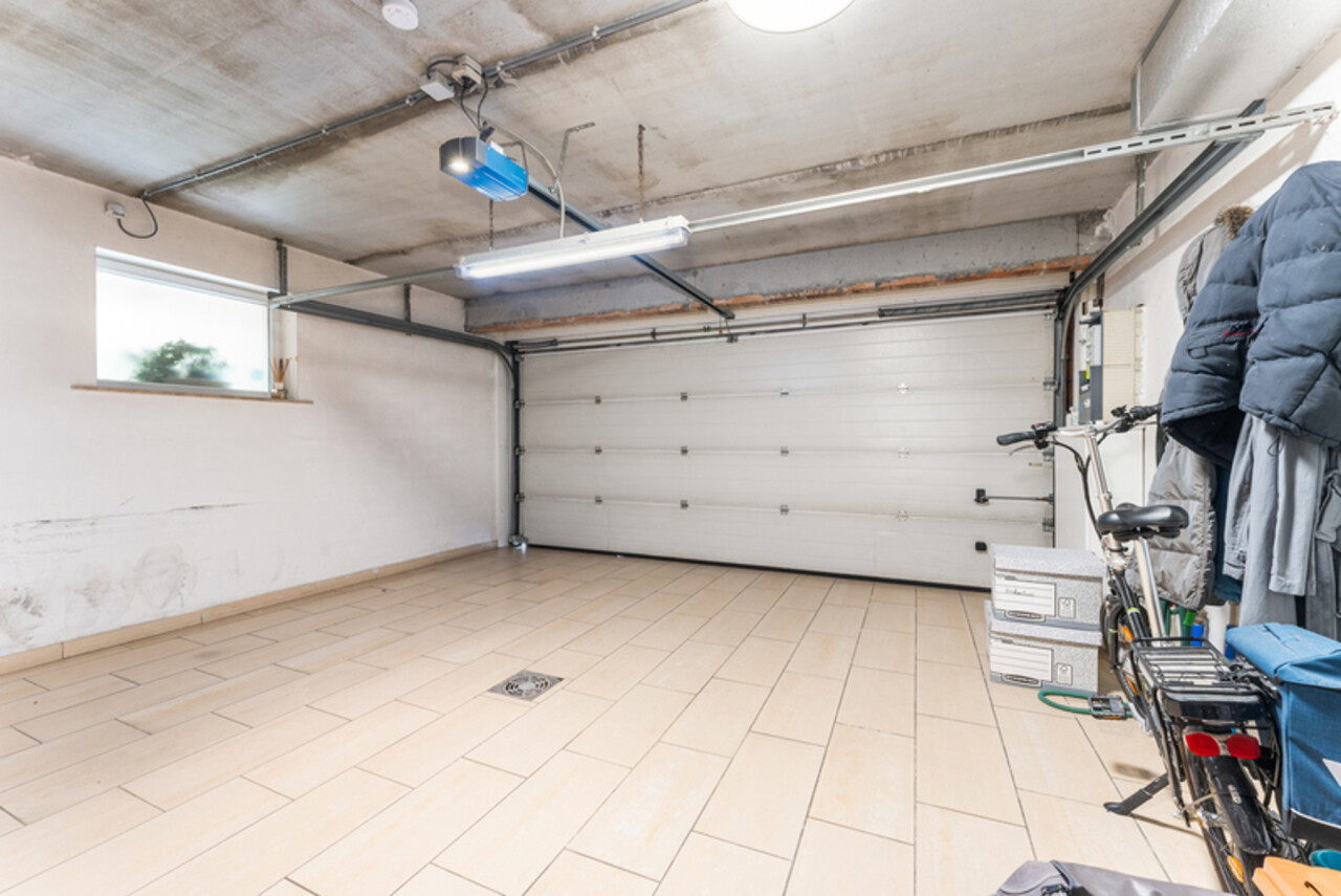 De woning beschikt bovendien over een dubbele garage met automatische sectionaalpoort en een ruime oprit met plaats voor drie wagens.
